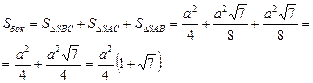 Площадь боковой поверхности данной пирамиды SABC состоит из суммы площадей ее боковых граней. Боковые грани – треугольники, один из которых прямоугольный и равнобедренный ( Тогда Рассмотрим