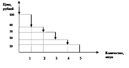 Изобразим теперь эти данные графически. График суммарного спроса на гамбургеры будет также кусочно-линейным.