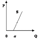 1 случай. Предложение неэластично – график выходит из горизонтальной оси под углом.