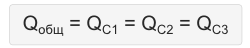 Вследствие того что через все последовательно соединенные конденсаторы течет одинаковый ток, количество накопленого электрического заряда для каждого конденсатора будет одинаковым, независимо от его емкости. Так происходит, потому что электрический заряд, накапливаемый на обкладке любого конденсатора, должен прийти с обкладки примыкающего конденсатора. Таким образом, последовательно соединенные конденсаторы имеют одинаковый электрический заряд: