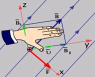 Лоренц күшiнiң бағытысол қол ережесi бойынша анықталады: егер сол қолды заряд жылдамдығына перпендикуляр