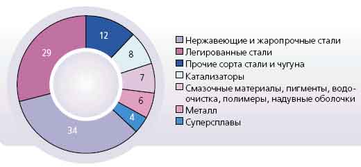 Рис.37. Структура конечного потребления молибдена, % (по данным Mining Annual Review)