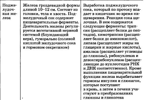 5.2. Поджелудочная железа. Сок поджелудочной железы, (до 2 л/сутки) содержит ферменты, расщепляющие белки (трипсин и химотрипсин), амилазу, мальтазу и лактазу, расщепляющие углеводы, липазу, гидролизующую жиры до глицерина и карбоновых кислот, нуклеазы расщепляющие нуклеиновые кислоты.