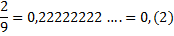 Здесь нам нужно найти примерное значение для 2/9 и подставить его в интервал. Это делается делением в столбик, чтобы получилась десятичная (возможно, периодическая) дробь.