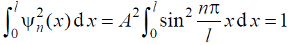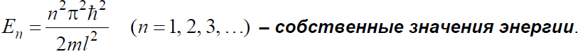 где l – ширина "ямы", а энергия отсчитывается от ее дна. Уравнение Шредингера для стационарных состояний в пределах ямы