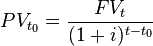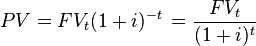 Величину PV называют дисконтированной (приведённой, текущей) стоимостью будущей суммы В общем случае сумма может быть приведена к любому моменту времени (не только к текущему):