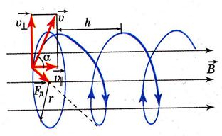 c) частинка рухається під кутом то заряд рухатиметься по гвинтовій траєкторії навколо ліній магнітної індукції.