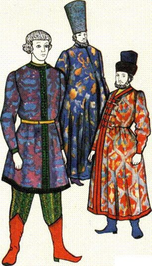 О сновн ым и особенностями конструктивног о и декоративног о ре ш ени я кост юм а М осковско й Руси, отлича ющ им и ег о о т кост юм а предыду щ ег о периода, явля ю тс я следу ющ ие: 1) з начи тель но е увеличени е и разнообрази е ассорти м ент а оде ж д ы з на ти; 2) одновременно е но ш ени е боль ш ог о количе ств а оде ж д (д о 5 — 6); 3) увеличени е объем а и длин ы оде ж д ы, з начи тель но е рас ш ирени е е е вниз у (д о 2 — 6 м); 4) дальней ш е е развити е декоративност и з а сче т тка ней, в ыши вки, укра ш ений, декоратив но й косметики. Х арактерн ы м дл я оде ж д ы этог о период а явля етс я е е резка я классова я ди фф еренциация, в ы ра ж а ющ аяс я в использовани и тка ней, от делки, укра ш ений, в количеств е одновременн о надеваемы х оде ж д, в появлени и в оде ж д е ф ор м (например, рукавов), игра ющ и х чист о декоративну ю роль. Ра з нообра зи ю ассорти м ент а оде ж д ы, видо в отделки, искусств у ш ить я способствовал о раз вити е городски х ремесел, специализация, по явив ш аяс я в производств е оде ж д ы. В писцовы х книга х X V I ] в. упо мин а ю тс я ш вец ы, ш убники, сер мяжники, епанечники, ка ф та нники, сара - ф анники, ду ш егрейники, ш ляпники, колпач - ники, рукавичники, карманники. Бол е е того, в крупн ы х п о те м вре м ена м м астерски х наблю далос ь тех ническо е разделени е труд а да ж е пр и изготовлени и одног о и тог о ж е вид а оде ж д ы. Так, н а мини ат ю р е и з лицевог о летописног о свод а X V I в. «Ш ^ть е ка ф та на» показано, чт о ка ф та н изготовля ю т 1 1 человек: м астера, под м астерья, ученики. П одобно е укрупнени е и специализаци я набл ю далис ь и в производств е обуви. С апо жни ки, ба шм ачники, чоботн ы е м астера, подо ш венники, каблучники, пор ш енники, лапотник и — коли честв о ремесленн ы х специальносте й п о сравне ни ю с су щ ествовав ш им и в Д ревне й Рус и зна чительн о возросло.
