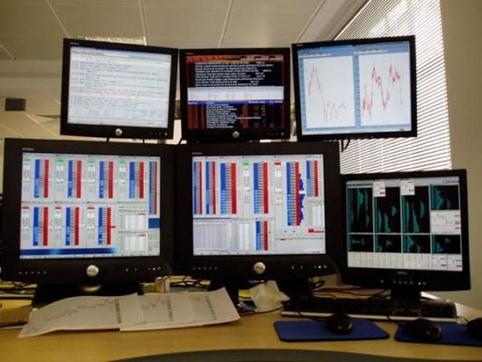 Это несколько мониторов, отдельный телевизор для просмотра экономических новостей.