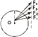 $$$ 46 К диску приложена одна из четырех сил. Под действием какой силы диск будет вращаться с большим угловым ускорением: