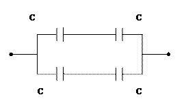 $$$ 323 Чему равна емкость батареи из одинаковых конденсаторов, соединенных как показано на схеме?