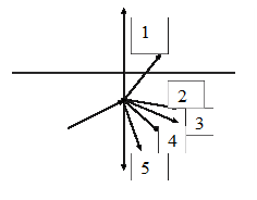 $$$ 516 Под каким углом должен падать луч на плоское зеркало, чтобы отраженный луч был перпендикулярен падающему? A) B) C) D) E)