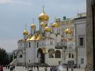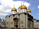 Главный вход в храм расположен со стороны соборной площади. Широкая лестница завершается порталом из 3 полукруглых арок. Вход в здание как бы охраняют архангел - Михаил и ангел-хранитель. Выше в арки вписаны лики святых. Над ними изображены фрески с богоматерями и младенцами, которые исполнены неизвестными художниками. В соборе венчались на царство русские цари, на церковных соборах избирались митрополиты и патриархи, оглашались важнейшие государственные указы. В Успенском соборе находится усыпальница московских митрополитов и патриархов.