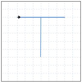Составим алгоритм по которому ГРИС нарисует на поле букву «Т». Исходное состояние – чистый лист. Исполнитель находится в точке, где будет находится левый конец горизонтального отрезка буквы «Т», направление вправо. Можно использовать только указанные команды из СКИ: шаг, поворот, прыжок.