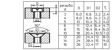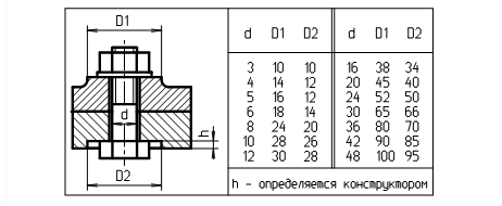 Опорные поверхности под болты Таблица 29 D1 - диаметр бобышки, D2 - диаметр углубления опорной поверхности под торцовый ключ.