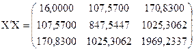 Для оцінювання невідомих параметрів рівняння лінійної множинної регресії скористаємося виразом (4.25), для якого вхідними даними будуть: