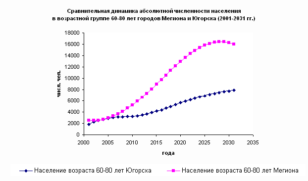 Чисельність людей похилого віку збільшиться в два рази до 2015 р., у три до 2020 р. і т.д. У Мегионе даний процес буде відбуватися ще більш масштабно і динамічно. Графік 8
