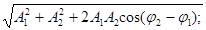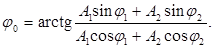 12. Кинематическое уравнение гармонических колебаний материальной точки x = A sin(wt+j 0), где x – смещение; А – амплитуда колебаний; w - круговая или циклическая частота; j 0 – начальная фаза. 13. Скорость материальной точки, совершающей гармонические колебания v = A wcos(w t + j 0) = v msin(ω t + φ0 + π/2). 14. Ускорение материальной точки, совершающей гармонические колебания a = A w2sin(w t + j 0) = а msin(w t + j 0 + π). 15. Сложение гармонических колебаний одного направления и одинаковой частоты: а) амплитуда результирующего колебания А = б) начальная фаза результирующего колебания