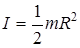 б) обруча (тонкостенного цилиндра) относительно оси, перпендикулярной плоскости обруча (совпадающей с осью цилиндра); I = mR 2; в) диска радиусом R относительно оси, перпендикулярной плоскости диска,
