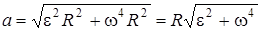 Тангенциальное и нормальное ускорения точки вращающегося тела выражаются формулами: а t = e R,(2) a n = w 2 R, (3) где w - угловая скорость тела; e - его угловое ускорение; R - расстояние точки от оси вращения. Подставляя формулы (2) и (3) в (1), находим
