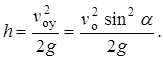 Подставив выражение времени t в формулу высоты h, получим