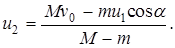 3. Написать уравнение в проекциях (M - m) v 0 + mv 0 = (M - m) u 2 + mu 1cos a, 4. Решить уравнение относительно u 2