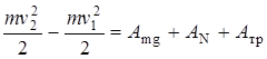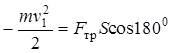 Кинетическая энергия в конечном состоянии mv 22/2 = 0, работы сил тяжести и нормальной реакции опоры в направлении оси х тоже равны нулю (А = F S cos a). 4. Записать уравнение в окончательном варианте