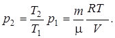 Массу гелия т 2выразим через массу т 1и массу m гелия, взятого из баллона: m 2 – m 1 = m. (в) Массу гелия т 1 найдем также из уравнения Менделеева - Клапейрона, применив его к начальному состоянию:
