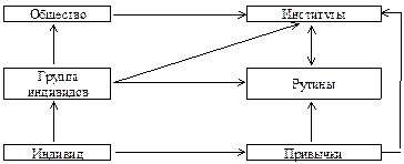 Рис..3. Взаимосвязь привычек, рутин и институтов Привычки, рутины и институты отличают стабильное и инертное качество и тенденция к непрерывности, поэтому характеристики институтов передаются во времени от одного к другому. Например, навыки, приобретенные рабочим в данной фирме, частично включены в его привычки. Также рутины фирмы есть стойкие институты и их труднее изменить, чем навыки отдельного рабочего. В этом отношении качество привычек, рутин и институтов аналогично информационной точности гена. Таким образом, привычки и рутины сохраняют знание, особенно неявное знание, действуя как передатчик информации и знаний во времени31. Однако это не означает, что любое действие управляется привычками и правилами, так как необходимо принимать во внимание творчество и инновации, появляющиеся в результате взаимодействия различных правил. В заключение отметим, что следование правилам и оптимизирующее поведение не обязательно исключают друг друга. Широкая распространенность привычек и правил превращает оптимизацию в особый случай в ряду различных способов поведения и принятия решений.