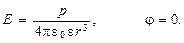 где e - диэлектрическая проницаемость среды; r - модуль радиус-вектора, проведённого от центра диполя к рассматриваемой точке поля. Напряжённость и потенциал поля диполя в точке, лежащей на перпендикуляре к плечу диполя, восстановленном из его середины,