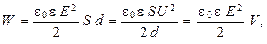 где S - площадь одной пластины; U - разность потенциалов между пластинами; V - объём конденсатора. Объёмная плотность энергии