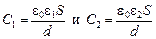 Емкость конденсатора до и после включения диэлектрика определяется соответственно выражениями: