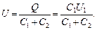 где U – разность потенциалов на зажимах батареи конденсаторов. Заряд после присоединения второго конденсатора остался прежним Q = C 1 U 1, поэтому из определения электроемкости следует: