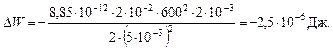 Слагаемые в последней формуле по структуре совпадают с известным соотношением для энергии заряженного конденсатора, поэтому проверка единиц не требуется. Вычислим результат: