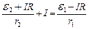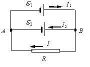 Если источники соединены так, как изображено на рисунке 6, б, то согласно 2-му правилу Кирхгофа для контуров будем иметь: а) контура e 1 ВRAe 1 I 1 r 1 + IR = - e 1, б) контура e 2 ВRAe 2 - I 2 r 2 + IR = e 2. Совместное решение уравнений дает