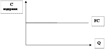 Затраты – это сумма средств (материальных, трудовых, финансовых), использованных в процессе производства. Часто понятие затрат заменяют понятием «издержки». Все затраты носят альтернативный характер. Выделяют: 1. Постоянные (фиксированные, условно-постоянные) затраты (FC) – это затраты, величина которых не меняется с изменением объема производства, а изменяется лишь относительная величина данных затрат на единицу продукции (аренда, затраты на амортизацию, аренду, лизинг, % по кредитам; оплата труда управленческого персонала и др.). При увеличении объема выпуска продукции величина постоянных затрат в сумме остается неизменной, но в расчете на единицу продукции – уменьшается. С этой точки зрения – б о льший объем производства предпочтителен. Графическое изображение постоянных затрат представлено на рисунке.
