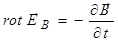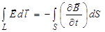 (Мы поставили знак частной производной, поскольку магнитная индукция может зависеть и от координаты и от времени.) Из 14.2 следует, что циркуляция этого поля по замкнутому контуру не равна нулю, в отличие от электростатического поля. Максвелл предположил, что изменяющееся во времени магнитное поле порождает вихревое электрическое поле, независимо от того, имеется у нас проводящий контур или нет. Просто если он есть, то позволяет зарегистрировать вихревое электрическое поле ЕВ. Левую часть уравнения (3.94) можно преобразовать по формуле Стокса