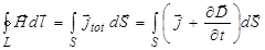В последнем уравнении мы поставили значки векторов – для общего случая и написали частную производную, поскольку в общем случае вектор электрического смещения может зависеть и от координаты. Проанализировав полученные результаты, Максвелл ввёл понятие общего тока как суммы токов проводимости и тока смещения. Здесь подчеркнём, что ток смещения – это просто название изменяющегося во времени электрического поля. Единственная функция тока смещения – создавать магнитное поле. Тогда обобщенный закон полного тока будет иметь вид
