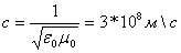 А это есть ни что иное, как волновые уравнения для векторов напряженности электрического и магнитного полей. Мы знаем, что коэффициент в правой части уравнений есть обратный квадрат фазовой скорости волны; отсюда сразу находим эту скорость: