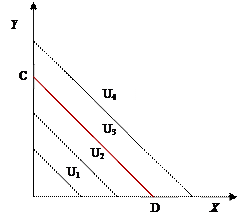 Если наклон бюджетной линии и кривой безразличия совпадают, то любой набор, принадлежащий бюджетному ограничению и совпадающей с ним кривой безразличия, будет оптимальным.