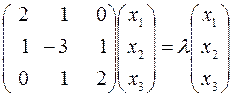 Иллюстрацией рассказанного выше может служить следующая задача определения собственных чисел и собственных векторов