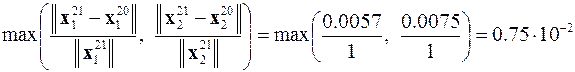 можно прекратить процесс их уточнения, поскольку относительная разница между 20-м и 21-м приближениями собственных векторов имеет величину меньшую заданной
