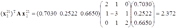 В результате получаются нормированные и взаимно ортогональные векторы x 1, x 2,..., x m. Эта операция над векторами выполняется на каждой итерации и итерационный процесс останавливается при выполнении условия его завершения. По окончании итераций собственные значения, соответствующее найденным на k -ой итерации собственным векторам, определяются с помощью соотношения Рэлея