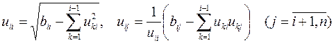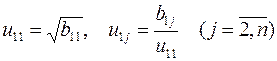 Для этого ненулевые элементы матрицы U вычисляются на основе элементов матрицы B по следующим формулам: - элементы 1-й строки