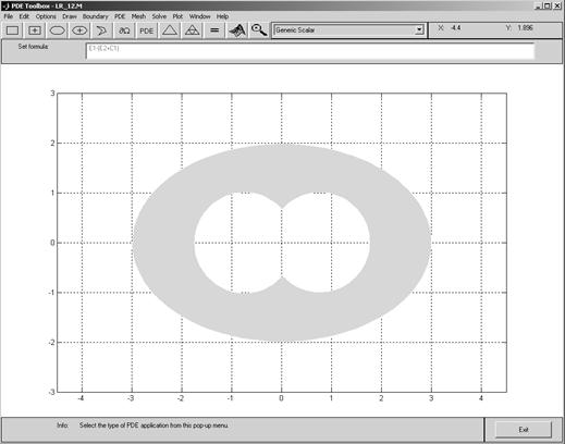 Решение. Процесс построения решения начально-краевой задачи для параболического уравнения в среде PDE Tool аналогичен описанному ранее для краевой задачи с эллиптическим уравнением. Сначала надо задать систему глобальных координат и нарисовать область S поиска решения, как это показано на рис.3.