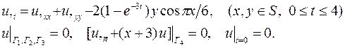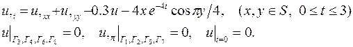 Рис.7. Контрольные задания Методом конечных элементов получить решение начально-краевой задачи для параболического уравнения. Область поиска решения указана в соответствии с номером варианта на рис.8–17. Оценить погрешность получаемого решения.