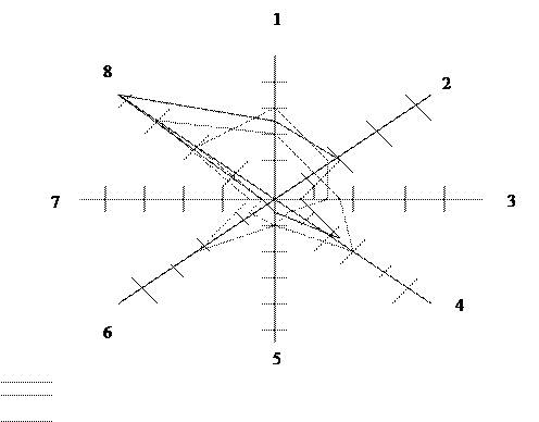 Максимальная сумма произведений соответствует третьей альтернативе, т.е. при выборе альтернативы методом таблицы оценок оптимальным вариантом является закупка зерна у сибирского производителя. При применении метода «Полигон альтернатив» альтернативы представляют графически на полярной диаграмме (рисунок 7.1).