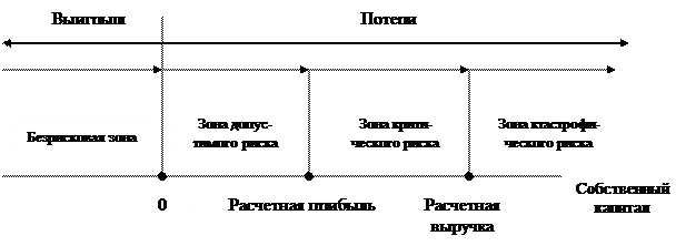 Как уже отмечено выше, большинство экономических оценок и управленческих решений носят вероятностный, многовариантный характер. Поэтому ошибки и просчеты — вещь обычная, хотя и неприятная. Однако менеджер всегда должен стремиться учитывать возможный риск и предусматривать определенные меры для снижения его уровня и компенсации вероятных потерь. В этом, собственно, и заключается сущность управления риском (риск-менеджмента). Главная цель риск-менеджмента (особенно для условий современной России) — добиться, чтобы в самом худшем случае речь могла идти об отсутствии прибыли, но никак не о банкротстве организации. Международный опыт бизнеса свидетельствует, что причиной большинства банкротств являются грубые ошибки и просчеты в менеджменте. Поэтому предприниматели и менеджеры должны уделять особое внимание эффективному управлению риском. Для оценки степени приемлемости риска следует прежде всего выделить определенные зоны риска в зависимости от ожидаемой величины потерь.