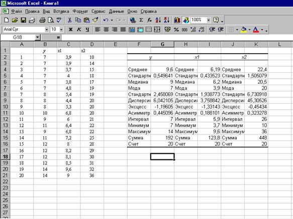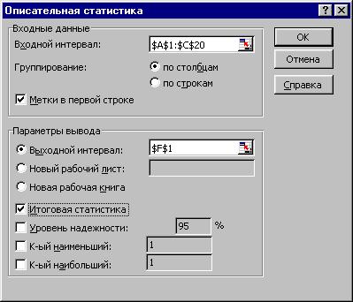 Если необходимо получить дополнительную информацию Итоговой статистики, Уровня надежности, k-го наибольшего и наименьшего значений, установите соответствующие флажки в диалоговом окне. Щелкните по кнопке ОК.