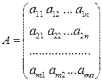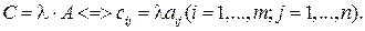 Матрицей размера m × n называется упорядоченная таблица, составленная из чисел, расположенных в m строках и n столбцах. Обозначаются матрицы А, В, С и т. д. Элемент матрицы, находящийся в строке с номером i и столбце с номером j, обозначается аij. Если m = n, то матрица называется квадратной порядка n. Произведением матрицы А на число называется матрица С того же размера, каждый элемент которой равен произведению соответствующего элемента матрицы А на число :